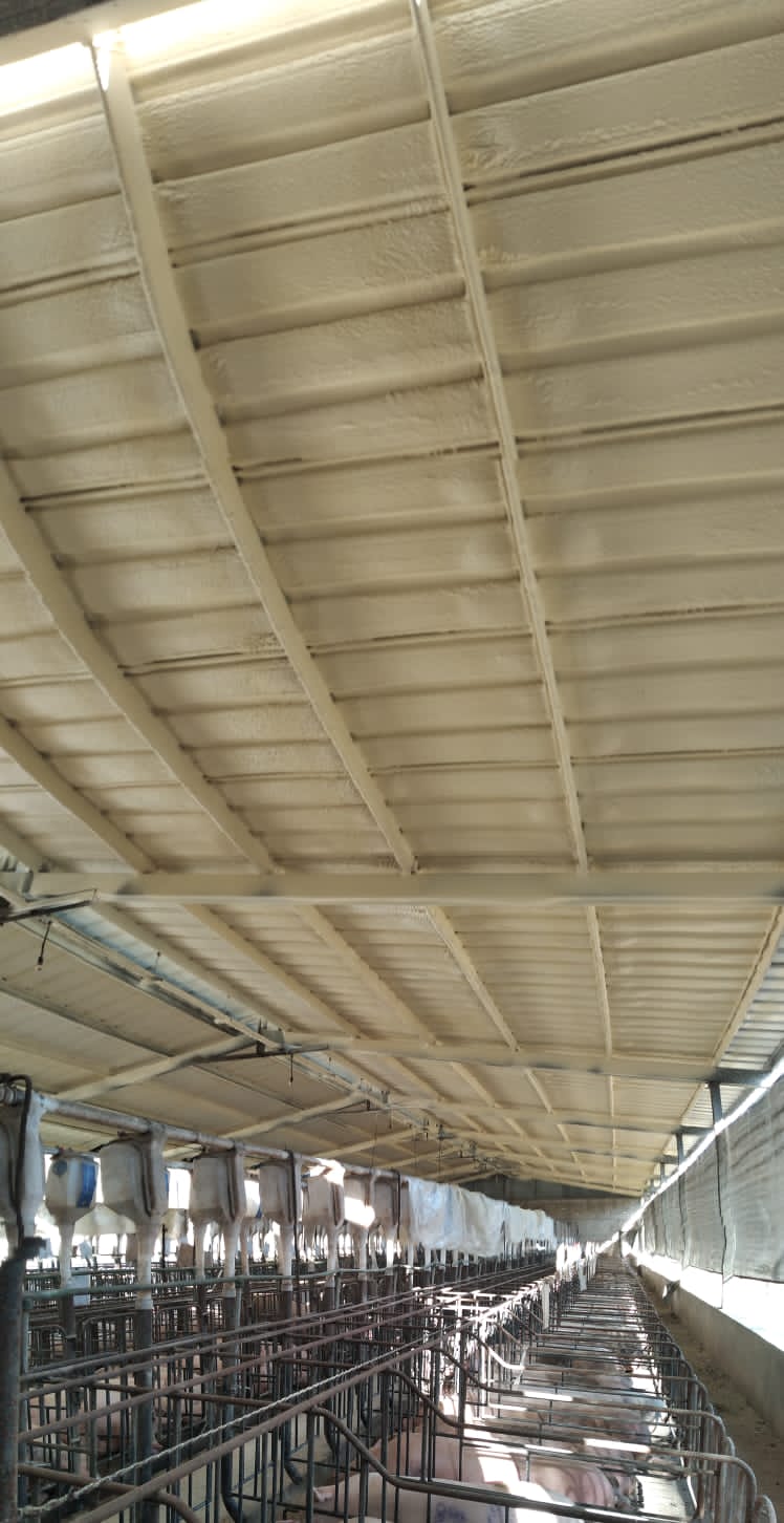 El poliuretano espreado es un aislante térmico de alto valor de resistencia térmica. Cuenta con retardante de flama y se adapta perfectamente a techos de laminas metálicas, plásticas o de asbesto, bóvedas, muros de concreto entre otras superficies. Es un material seguro y de alta duración. Producto altamente recomendado para cubiertas de granjas porcícolas y granjas avícolas.