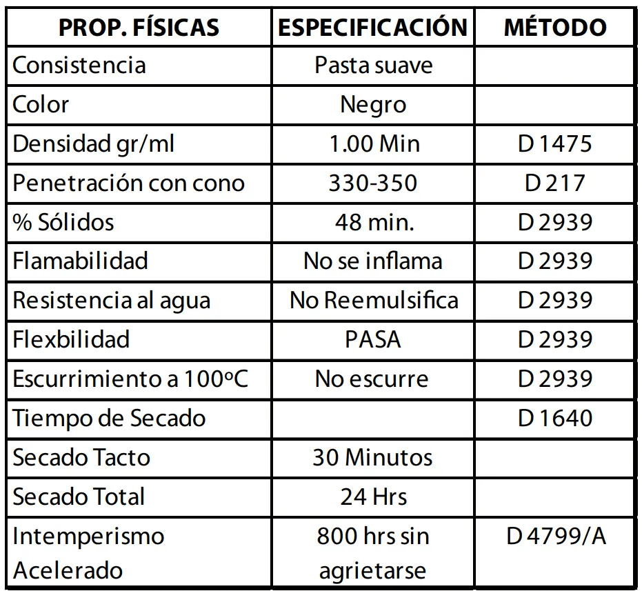 Impermeabilizante asfáltico fibratado con fibras especiales (base agua) de aplicación en frío, libre de asbesto, de fácil aplicación, con gran resistencia al paso de la humedad y excelente resistencia al intemperismo, para techos de concreto solamente.
